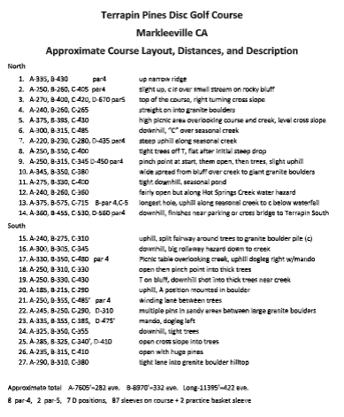 Welcome to the Markleeville Disc Golf/Terrapin Pines Enthusiast